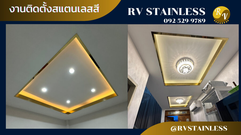 - งานฝ้า ผนังตกแต่ง และเสาหุ้มสแตนเลส